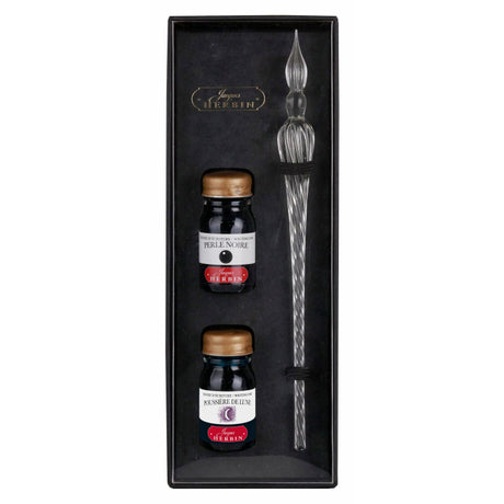 Jacques Herbin skaidraus stiklinio plunksnakočio-rašiklio ir rašalo rinkinys