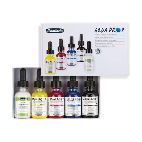 Schmincke Aqua Drop skysti akvareliniai dažai + akvarelinis laineris, 5x30 ml