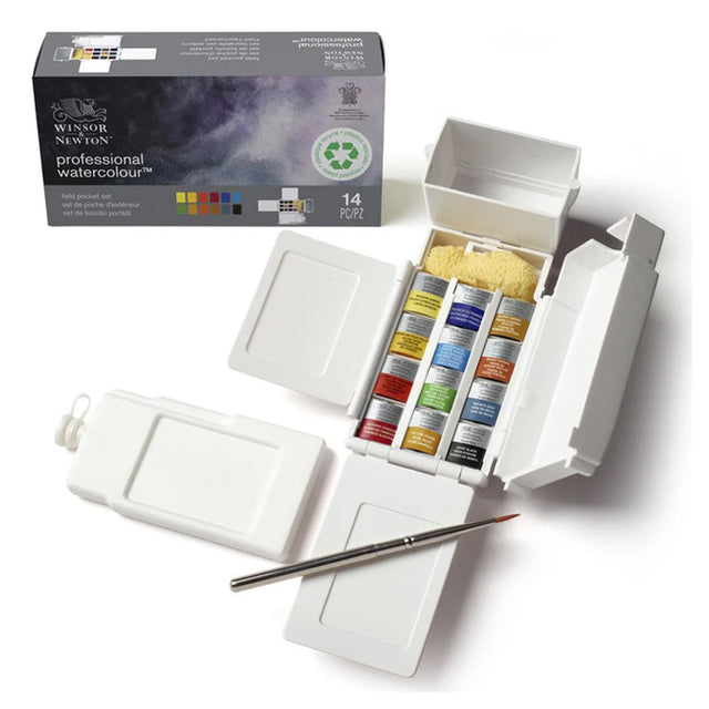 - Atraskite 12 geriausių profesionalių akvarelės spalvų, pasižyminčių neprilygstamu patikimumu. Šiame rinkinyje rasite viską, ko reikia norint tapyti akvarele lauke - tai unikalaus dizaino kišeninis rinkinys. Rinkinį sudaro: 1 x kelioninis teptukas, 1 x kempinėlė, 1 x 35 ml buteliukas, 1 x indelis vandeniui, 12 x profesionalių Half-Pan akvarelės kubelių;