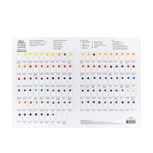 Winsor & Newton Professional akvarelės spalvų kortelė, 109 spalvos