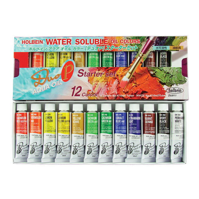 Holbein DUO Aqua Oil vandeniu skiedžiamų aliejinių dažų rinkinys, 12x10 ml