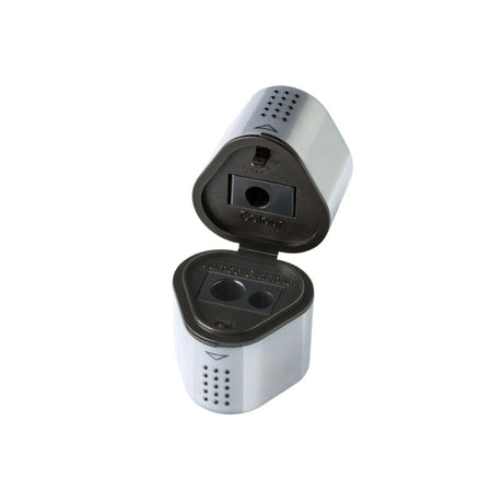 Faber-Castell Grip 2001 Trio drožtukas su konteineriu, sidabrinės spalvos