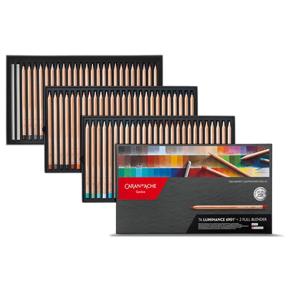 Caran d'Ache LUMINANCE spalvotų pieštukų rinkinys, 76 vnt. + 2 pieštukai maišymui