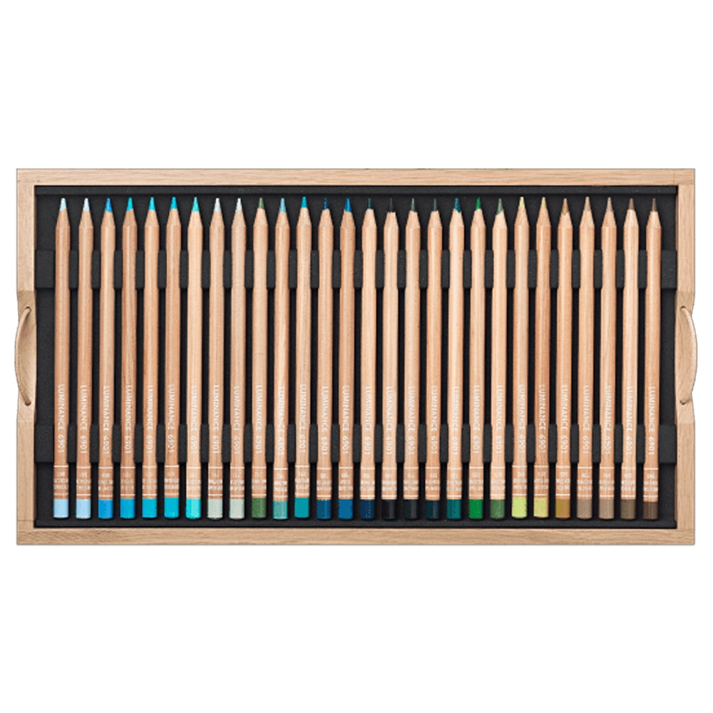 Caran d'Ache LUMINANCE spalvotų pieštukų rinkinys medinėje dėžutėje, 100 vnt. + 2 pieštukai maišymui