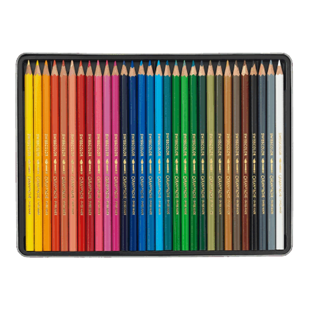 Caran d'Ache Swisscolor akvarelinių spalvotų pieštukų rinkinys, 30 spalvų