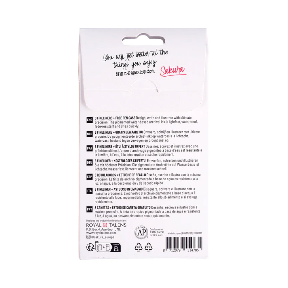 Sakura Pigma Micron juodų tušinukų rinkinys, 3 tušinukai + dėklas