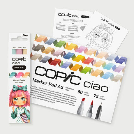 Copic Ciao Layer & Mix Vibrant markerių ir popieriaus rinkinys pradedantiesiems