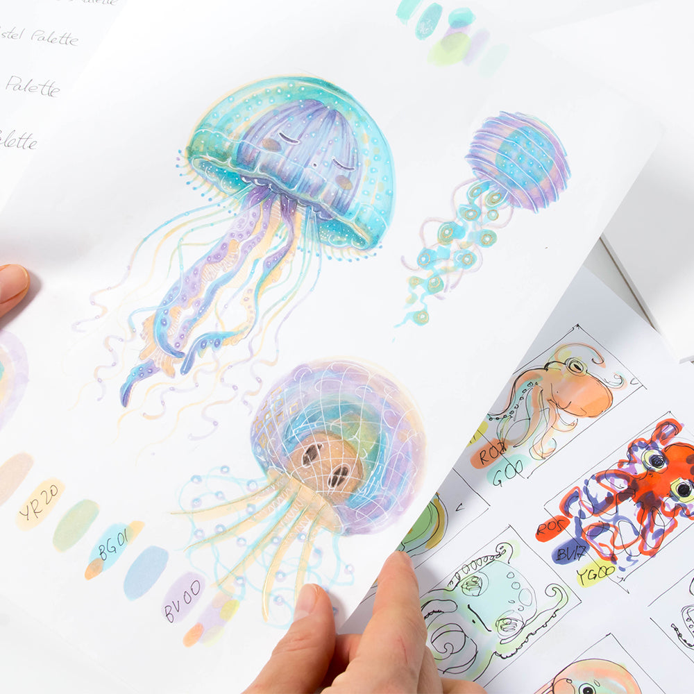 - 1 x Copic Ciao popieriaus bloknotas, skirtas markeriams – ploni lapai leidžia matyti ir žymėti po jais esančius pavyzdžius, o ryškiai baltas popierius užtikrina tikrovišką, ryškų spalvų atspindėjimą. Lygus paviršius palengvina sluoksnių uždėjimą, maišymą ir spalvų maišymą, sunaudojant minimalų kiekį rašalo. Specialus galinis sluoksnis neleidžia rašalui prasiskverbti. 50 lapų, 75 g/m², be rūgščių, be chloro ir neutralaus pH.