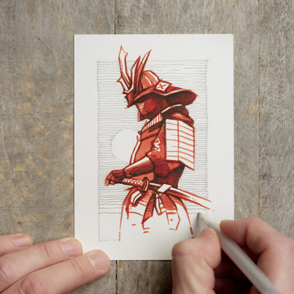 - Sekite paskui kūrėją pridėtoje nemokamoje vaizdo pamokoje ir greitai nupieškite įspūdingą samurajaus iliustraciją!