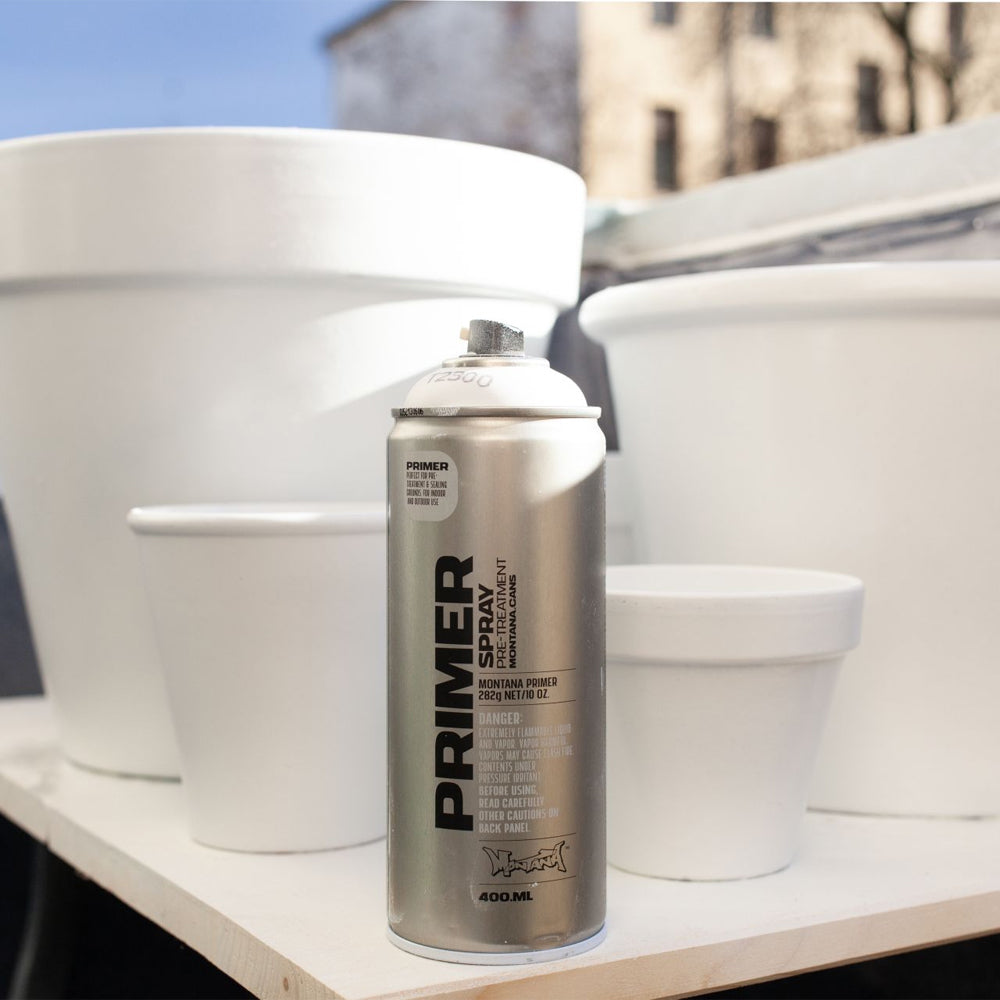 - Kai UNIVERSAL PRIMER išdžiūsta ir sukietėja, ant jo galite užpurkšti bet kokią Montana-Cans spalvą, TECH arba EFFECT purškalą;