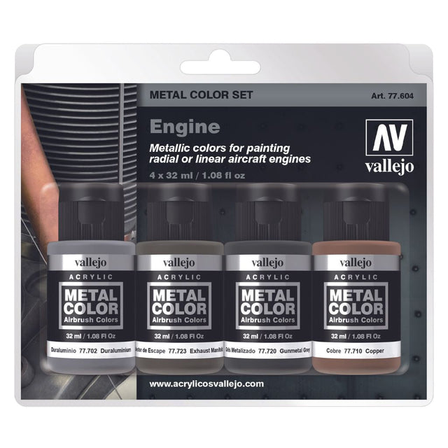 Vallejo Engine Metal Color akrilinių dažų rinkinys, 4x32 ml