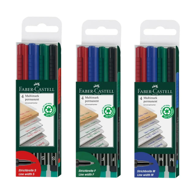 Faber-Castell Multimark permanentinis rašiklių su trintuku rinkinys, 4 spalvos