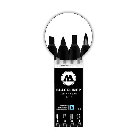 Molotow Blackliner Set 3 vandeniui atsparių juodų tušinukų rinkinys, 4 vnt.