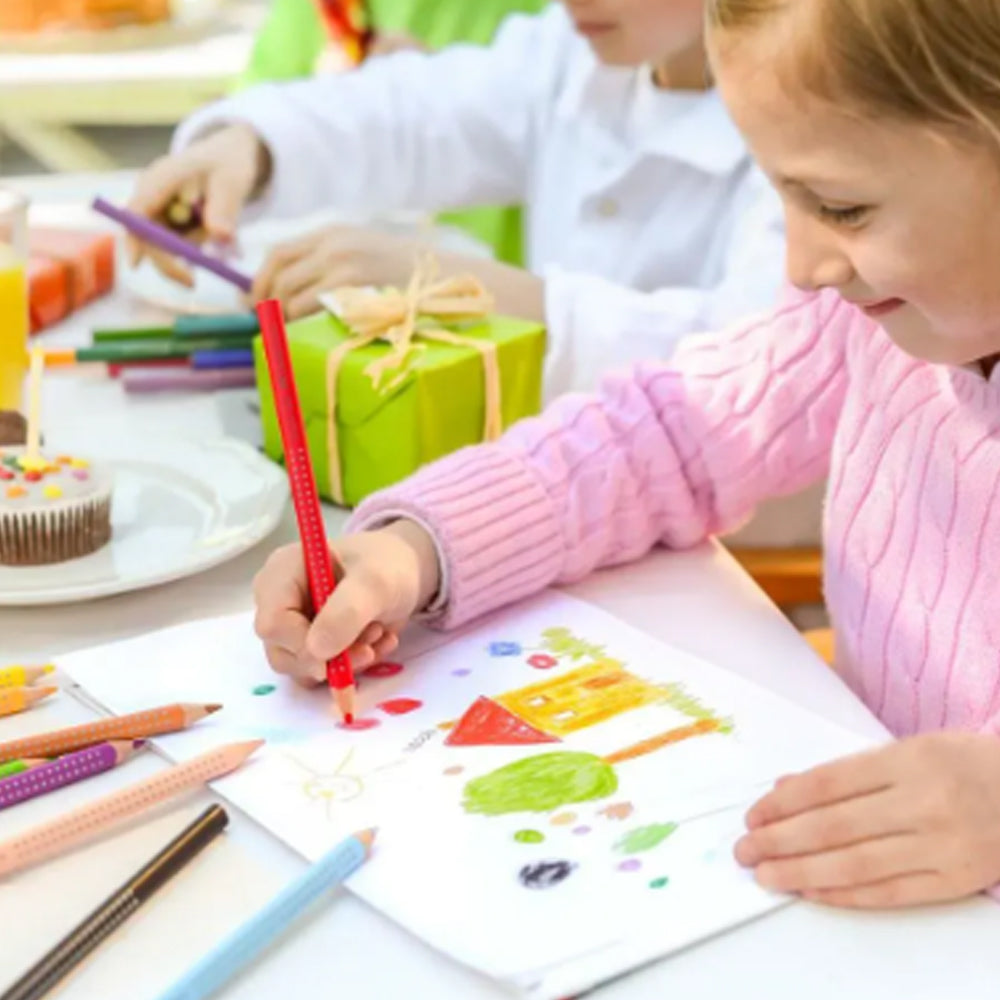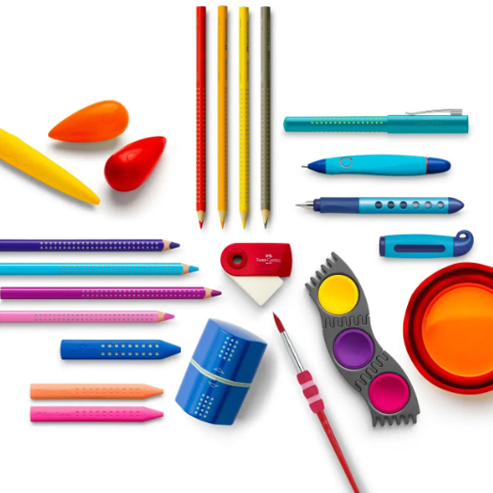 - Spalvotas pieštukas „Jumbo Grip“ su patentuota sukibimo zona, užtikrinančia saugų, neslystantį sukibimą;