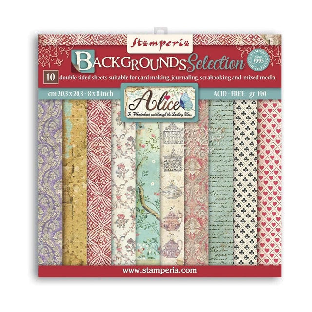 Stamperia dvipusio skrebinimo (dekoravimo) popieriaus rinkinys - Alisa, fonų rinkinys, 10 vnt./pak.