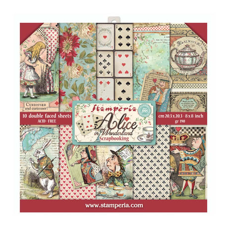 Stamperia dvipusio skrebinimo (dekoravimo) popieriaus rinkinys - Alisa stebuklų šalyje, 10 vnt./pak.