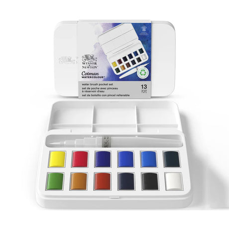 Winsor & Newton Cotman kišeninis akvarelės rinkinys su vandens teptuku, 12 spalvų, Half-Pan