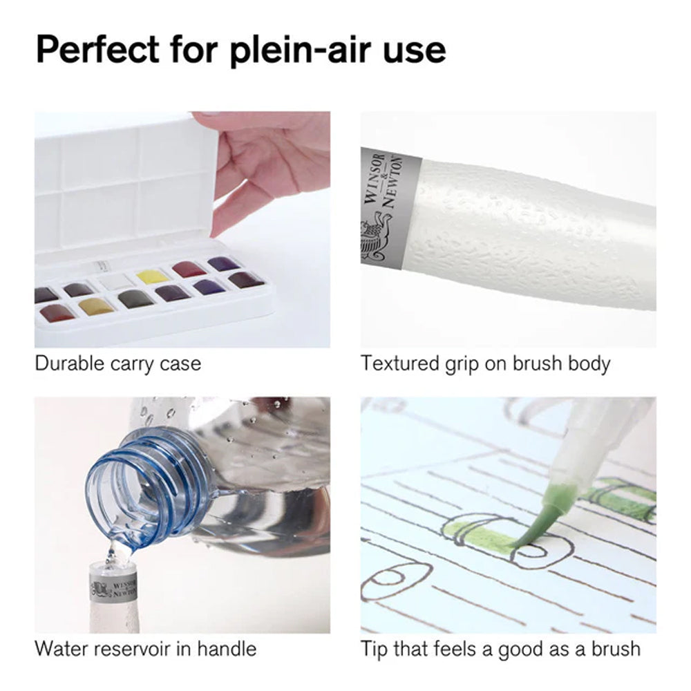 - Šiame rinkinyje esantis vandens teptukas turi vandens rezervuarą, įmontuotą kotelyje, todėl puikiai tinka naudoti lauke;