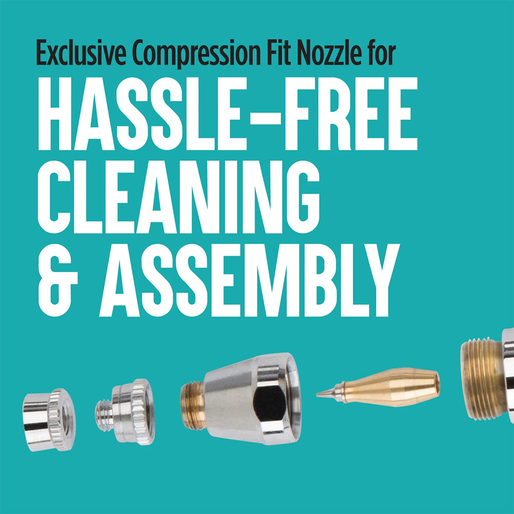 - Iwata Eclipse Series airbrushes feature an exclusive compression fit nozzle that is easy to clean and assemble;
