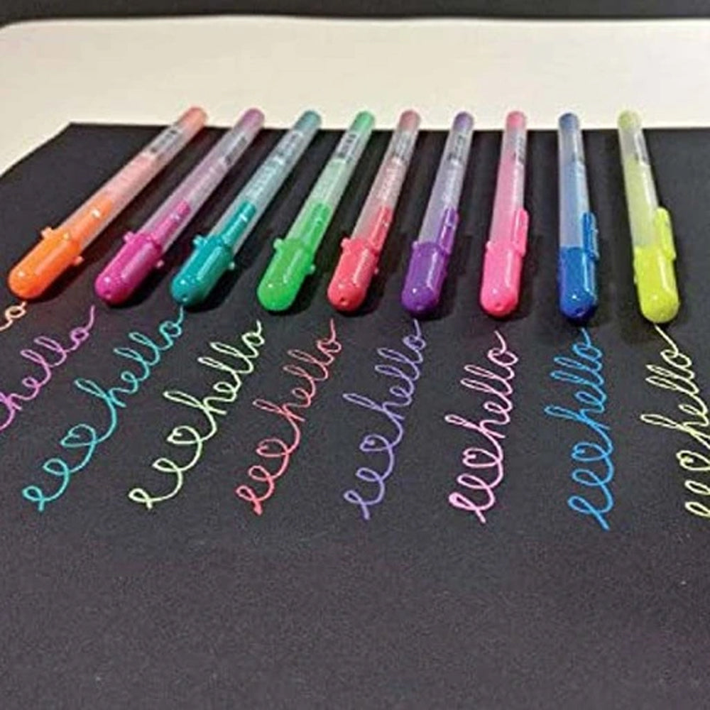 - This set contains one piece of each bright coloured fluorescent Moonlight gel pen in the colour Fluorescent Yellow (403), Fluorescent Orange (405), Fluorescent Vermillion (418), Fluorescent Pink (420), Red (419), Rose (421), Purple (424), Blue (436), Green (429), Fluorescent Green (427), 1 Clear Stardust gel pen (700), and 1 Basic White gel pen (50);