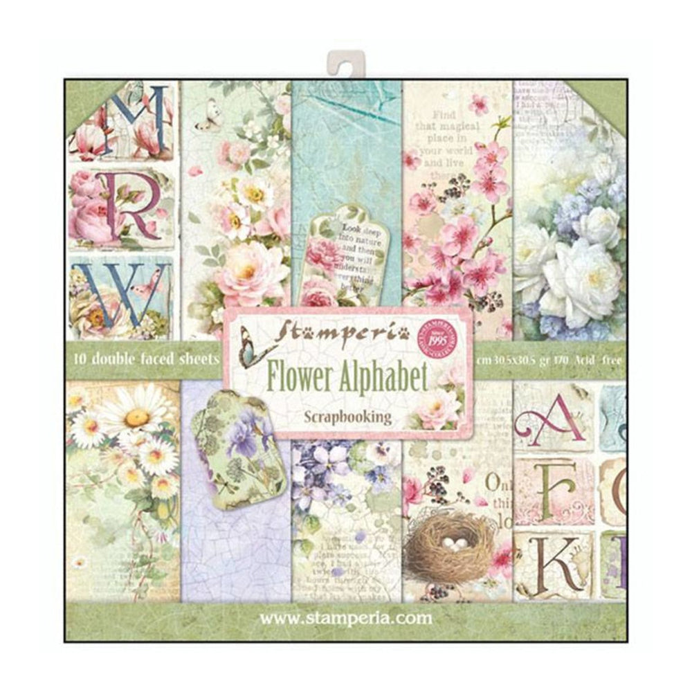 Stamperia Double-Sided Scrapbooking Paper Set - Flower Alphabet, 10 units