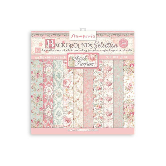 Stamperia Double-Sided Scrapbooking Paper Set - Rose Parfum Backgrounds Selection, 10 units