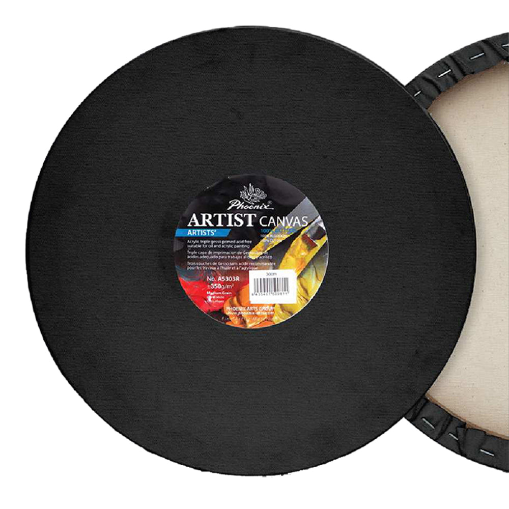 Phoenix Black Round Primed Canvas on a Frame - 20 cm is backordered and will ship as soon as it is back in stock.
