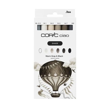 Copic Ciao SHADE Warm Gray&Black Markers Set, 6 pcs.