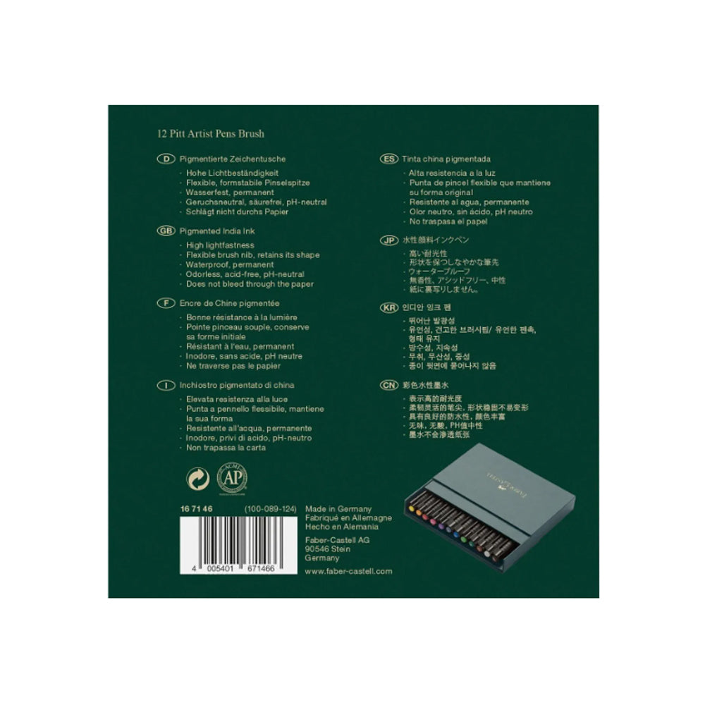 Faber-Castell Pitt Artist India Ink Brush Pen Set, 12 pcs., various colours