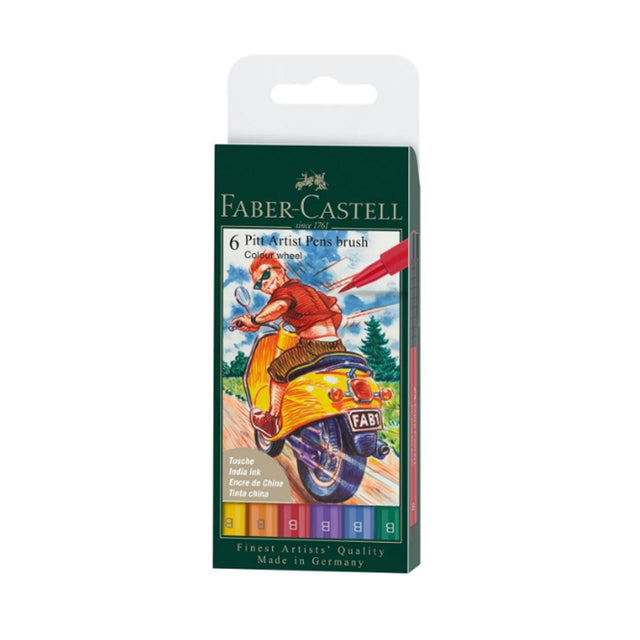 Faber-Castell Pitt Artist India Ink Brush Pen Set, 6 pcs., Colour Wheel