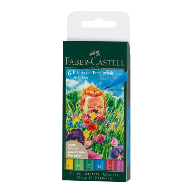 Faber-Castell Pitt Artist India Ink Brush Pen Set, 6 pcs., Springtime