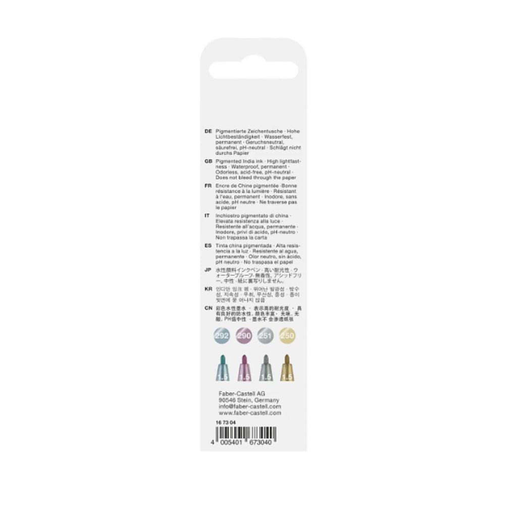 Faber-Castell Pitt Artist India Ink rašiklių rinkinys, 4 vnt., Metallic, 1.5