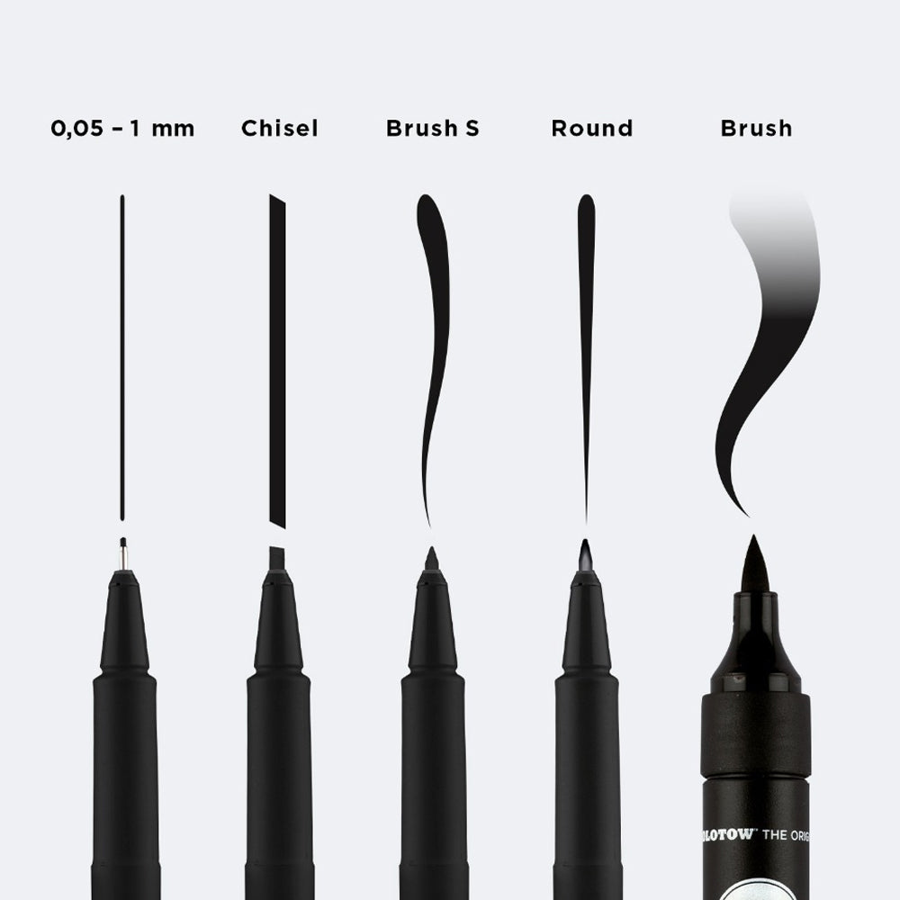 - There are different, robust tips starting from 0.05 mm – 1 mm, as well as special tips: Chisel, Round, Brush S and Calligraphy.
