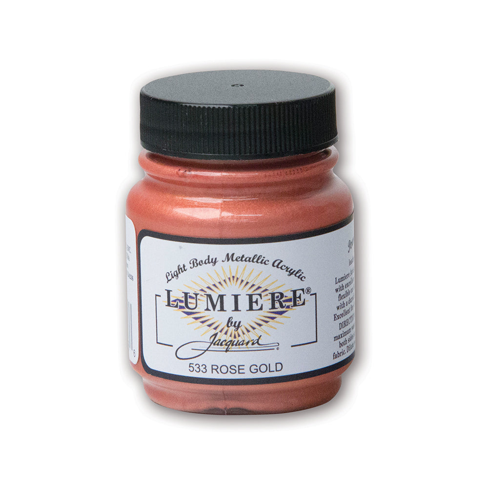 Jacquard Lumiere Universal Paint for Decor or Textile Applications - 66.54 ml / Rose Gold 533 is backordered and will ship as soon as it is back in stock.