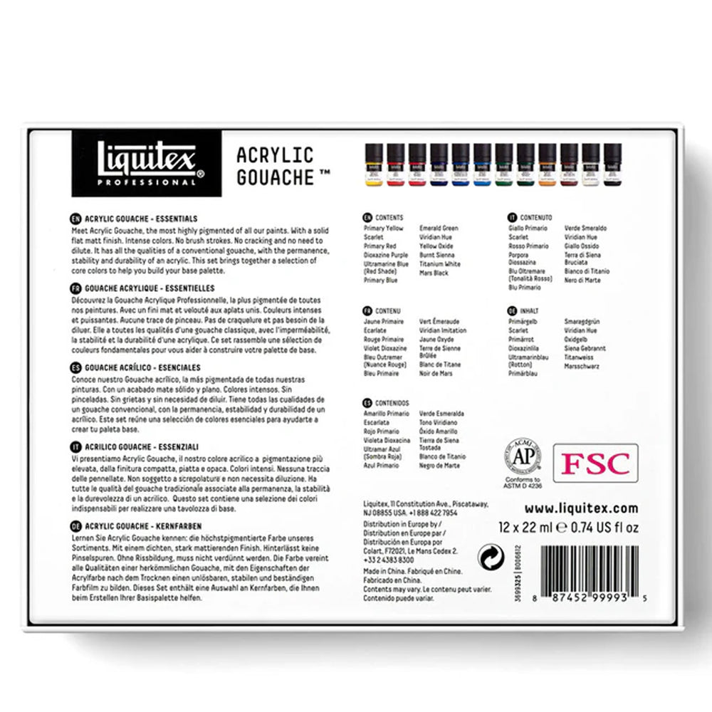 Liquitex Acrylic Gouache Essentials Set, 12x22 ml