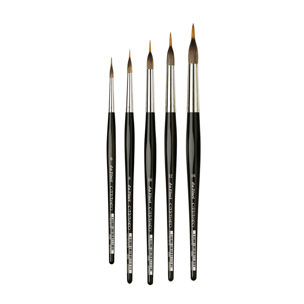 Developed by da Vinci brushes in Germany, Casaneo is the latest breakthrough in synthetic brush making. Casaneo uses a new "wavy" or "crimped" fiber that yields stunning results. Excellent for watercolor, gouache, acrylic, silk painting, calligraphy, with ink and for sketching, Casaneo is like no other synthetic brush. A favorite brush of the Urban Sketchers movement.