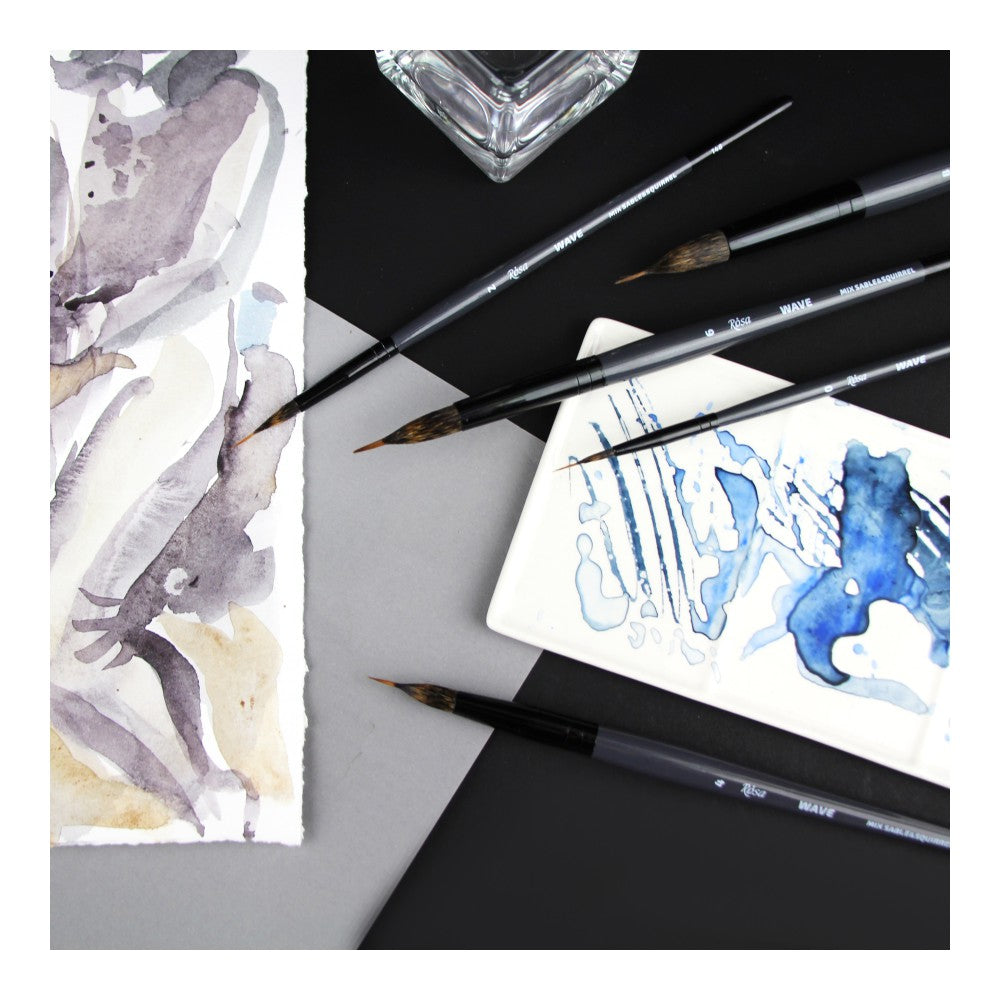 - ROSA WAVE round liner brushes made of a combination of squirrel and sable hair exceed the expectations of the brush: soft squirrel hair absorbs and holds water well, and the sable hair retains the elasticity of the core;