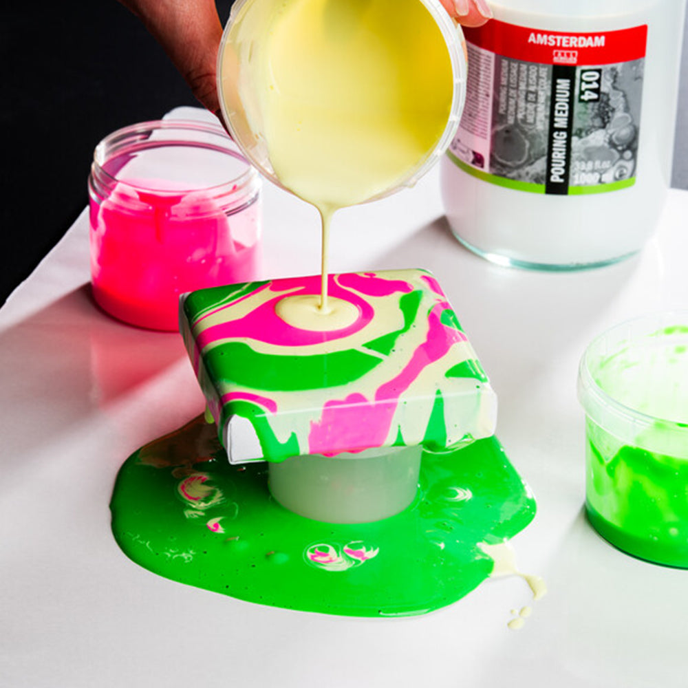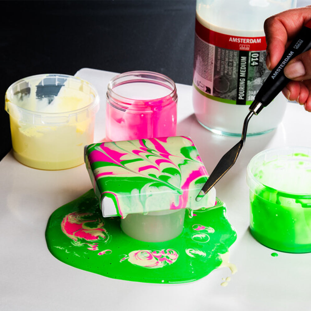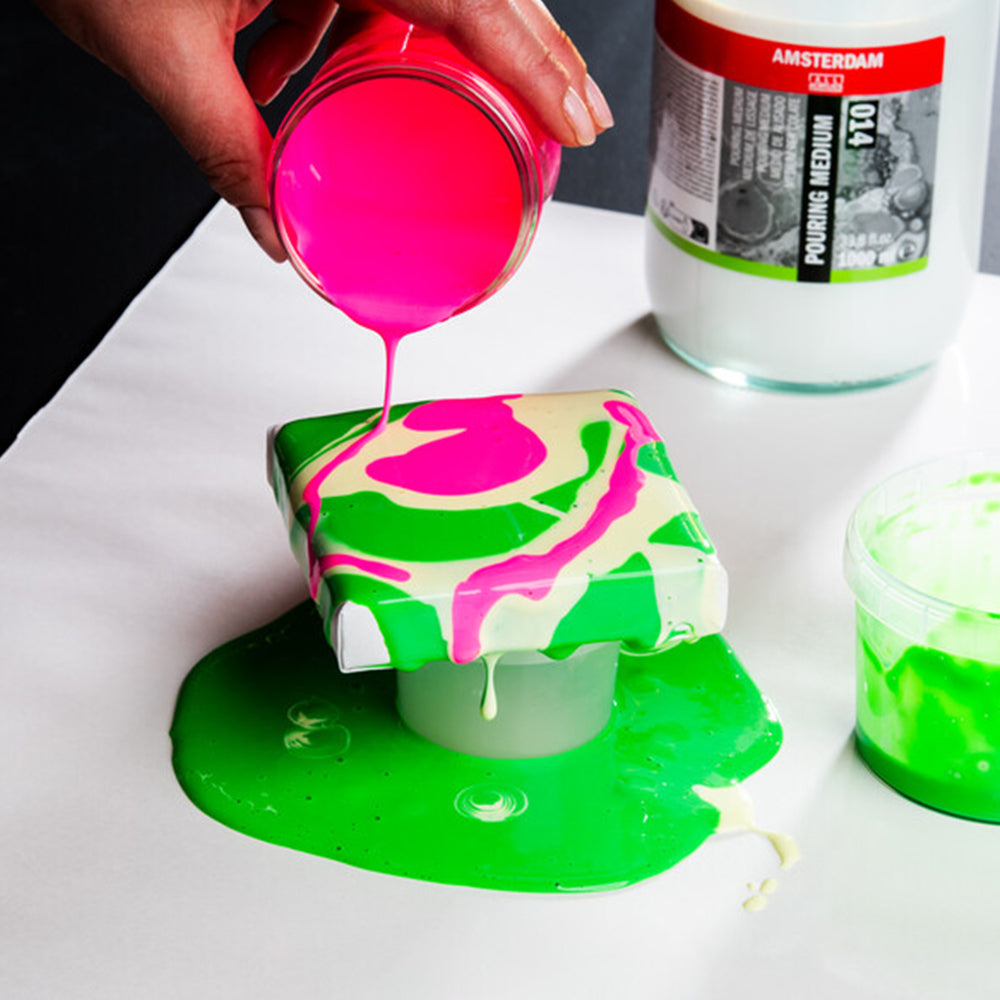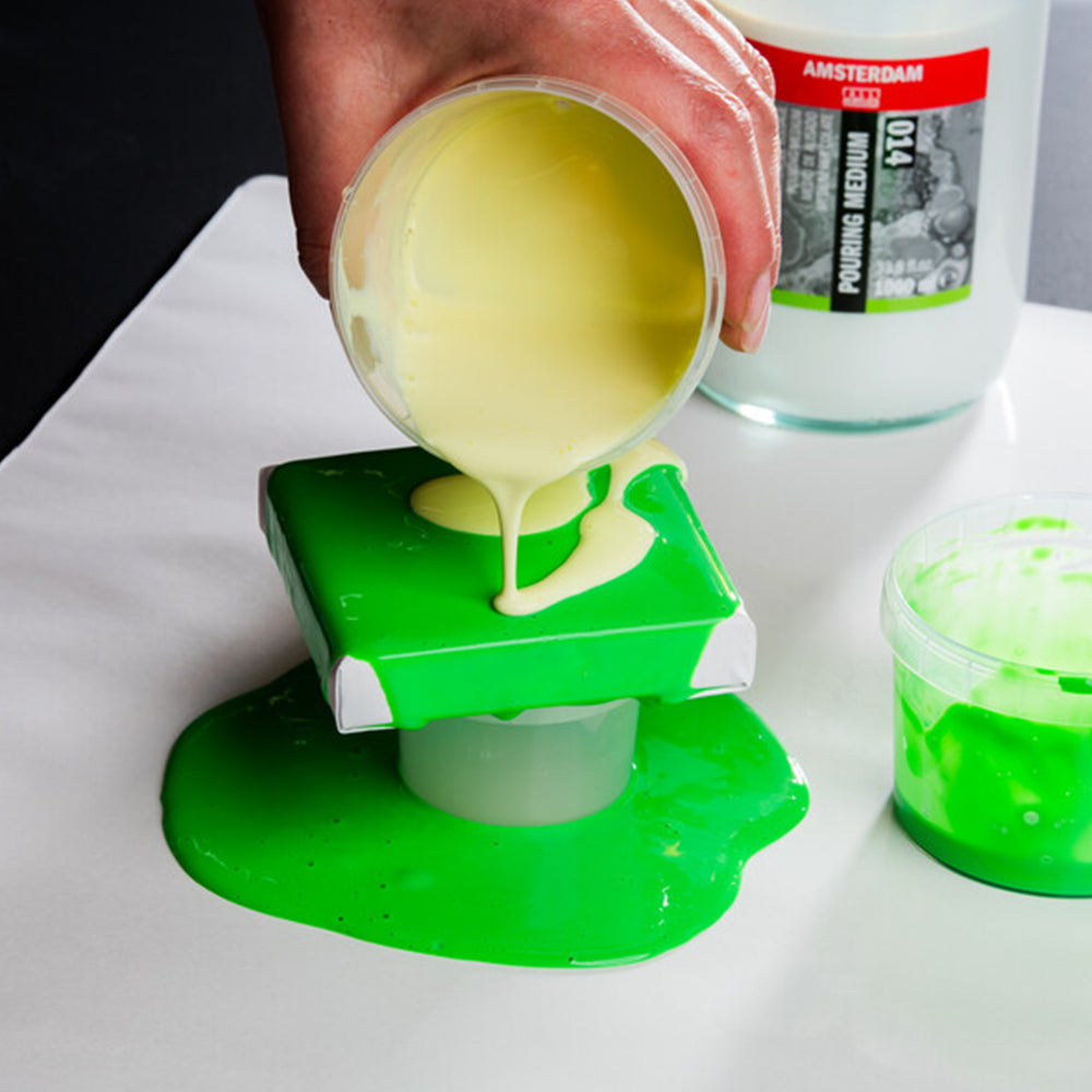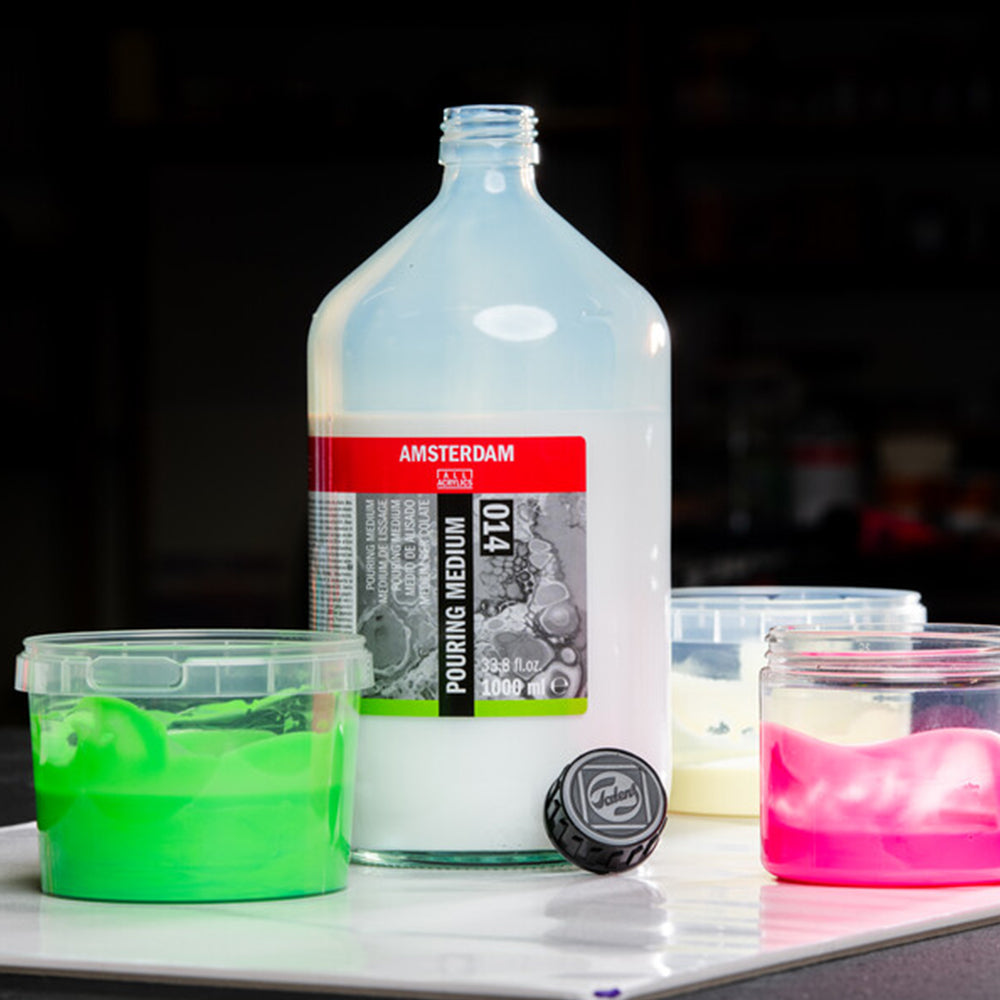 - Change the flow of your acrylics or acrylic ink by adding Amsterdam pouring medium;