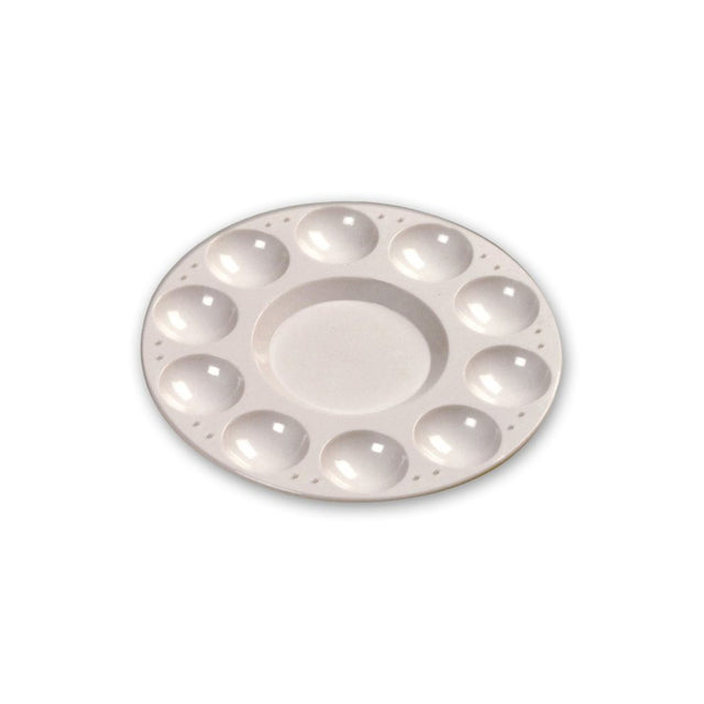 - Made from plastic, this palette has 10 deep, round wells and a large mixing area in the centre;