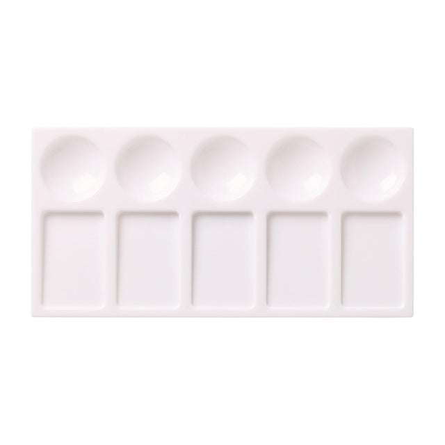 - Rectangular plastic painting palette with 10 places for colours - 5 rectangular grooves and 5 round grooves;