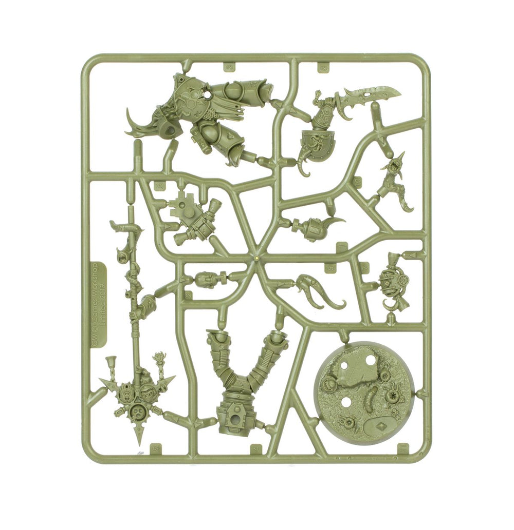 – 7x Plague Marine Kill Team operatives, cast in green plastic