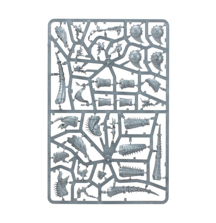 - The kit provides a wealth of customisation options – six heads and three shields that can be used with any of the riders, as well as interchangeable tails, armour plates, and feather decorations for the aggradons – allowing you to build a varied roster of reptilian riders and steeds;