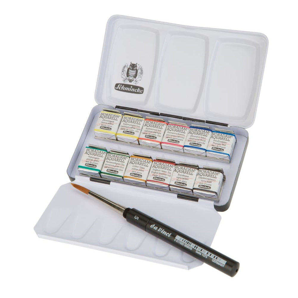 Schmincke Horadam Aquarell 12 Colour Set with a Brush, Half-Pan