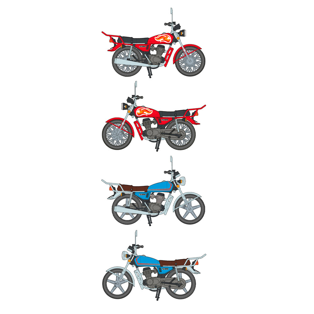 - Iš šio rinkinio galima pastatyti vieną iš dviejų CG125 versijų su skirtingais prietaisų skydeliais, žibintais ir ratlankiais;