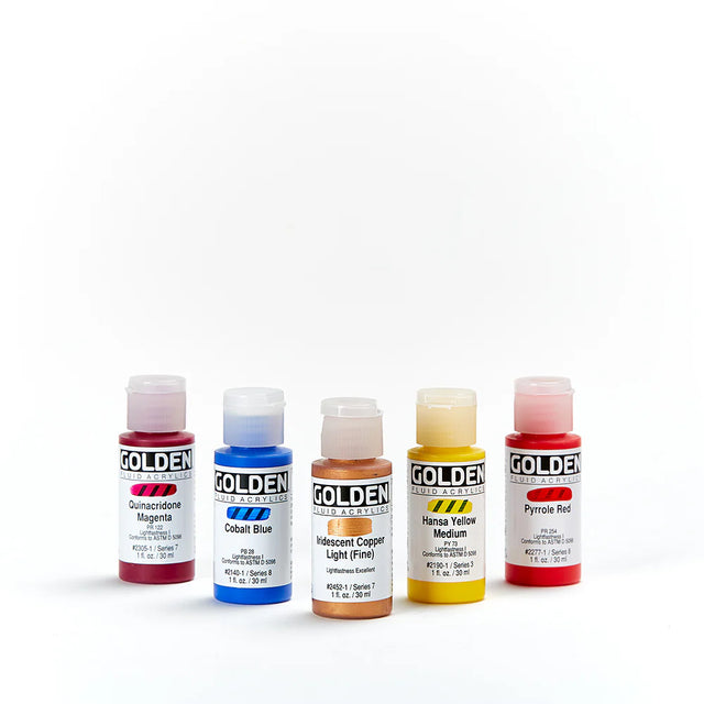- GOLDEN Fluid Acrylics turi tokį patį pigmentų kiekį kaip Heavy Body Acrylics, bet jų klampumas yra panašus į tirštos grietinėlės;