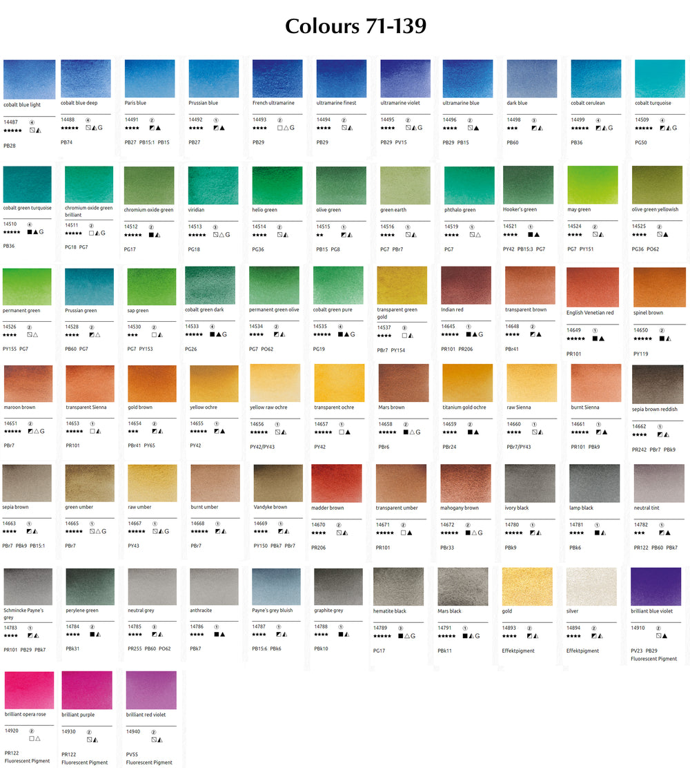 Schmincke Horadam akvarelės kubeliai, Half-Pan, spalvos 71-139