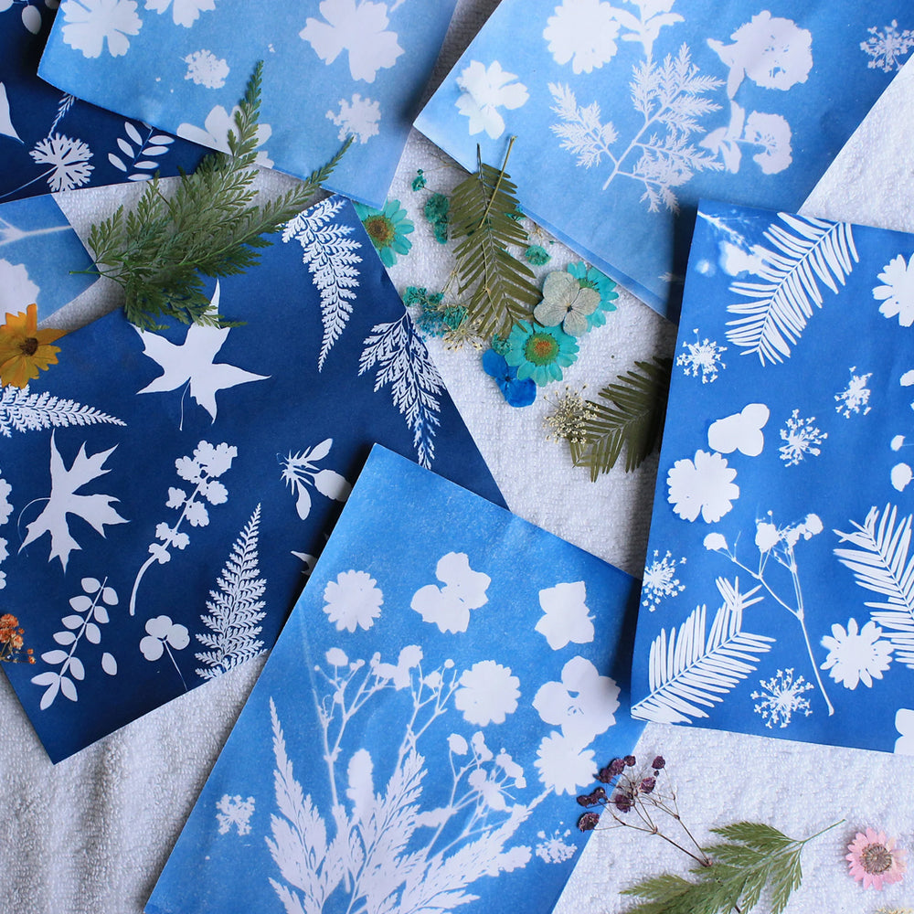 Menas su saulės galia! Saulės atspaudas, pagrįstas cianotipijos procesu, kurį menininkai naudoja nuo pat jo sukūrimo XIX a.